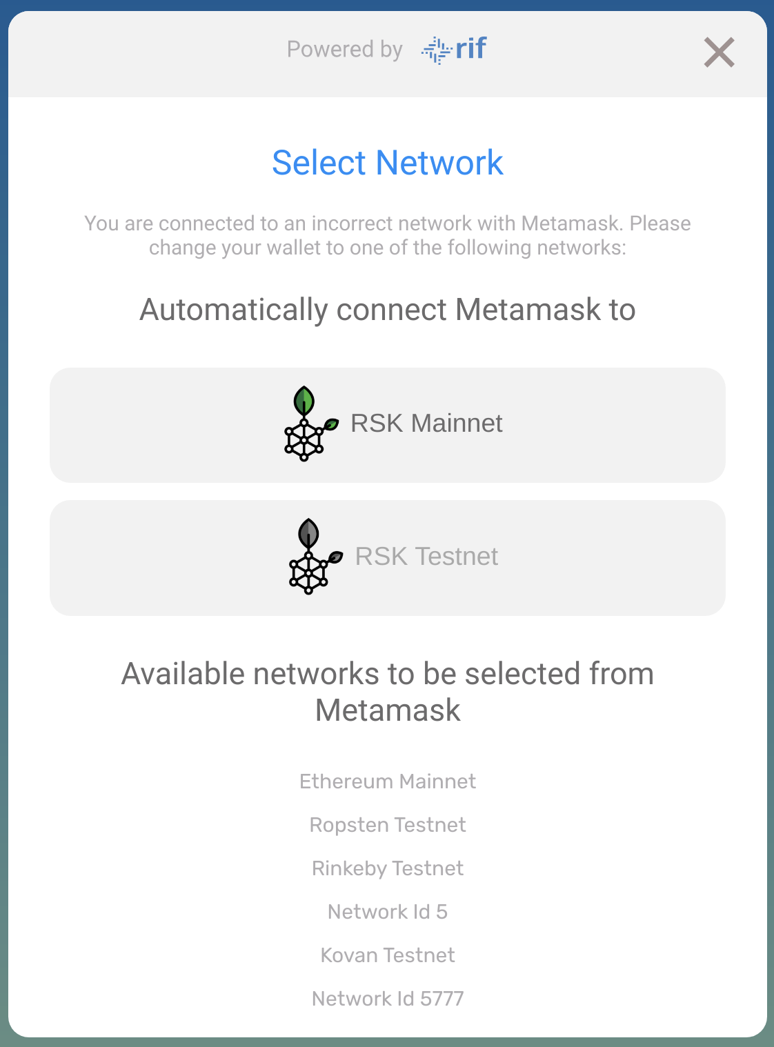 Then click "Switch Network" to connect to the Rootstock Mainnet.